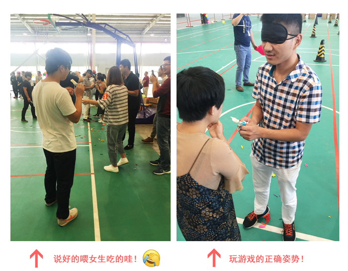 【游戲規則:男生在起點(diǎn)蒙上雙眼并拿上一根雪糕,原地轉五圈后繞過(guò)障礙物跑向終點(diǎn),找到相應號碼的女生后喂她把雪糕吃完(注意:是喂女生吃,不是自己吃?。?/strong>,最終以吃完雪糕的順序判斷勝負!】