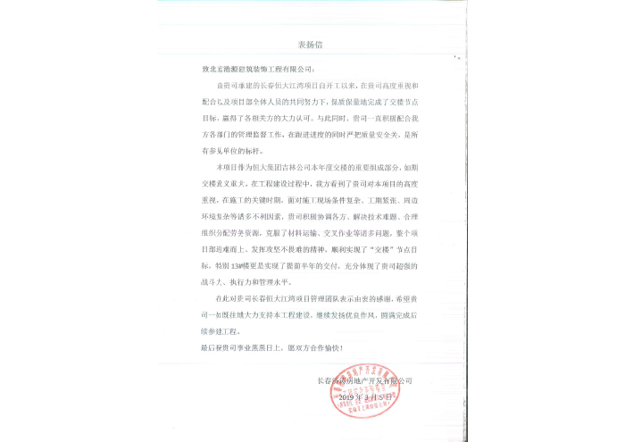 長(cháng)春恒大江灣項目-表?yè)P信